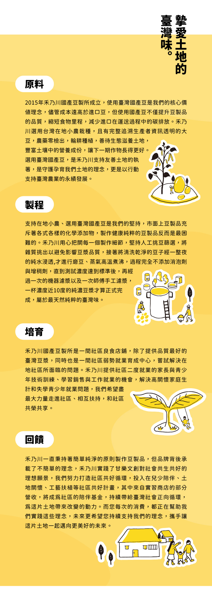 選用台灣在地小農栽種且透明可溯源的上等青仁黑豆,細火手工焙炒, 自然無添加。黑豆也有「豆中之王」的美名,提供優質蛋白質,花青素、B群含量也非常高,是健康養生的好選擇。