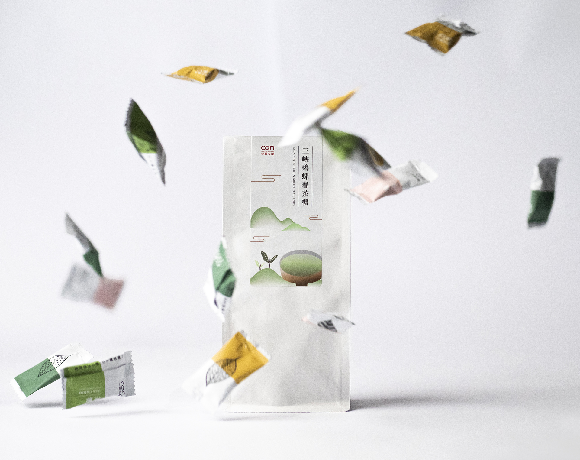 帶著濃郁碧螺春茶香,三峽限定呷甜甜「碧螺春茶糖」是由三峽出產的碧螺春茶所製成。精心手摘挑選茶葉, 在海拔200公尺丘陵有機茶園的礫質與砂質壤土上,凝聚了春日的嫩翠芬芳和時雨,所以有著獨特的甘甜清香。