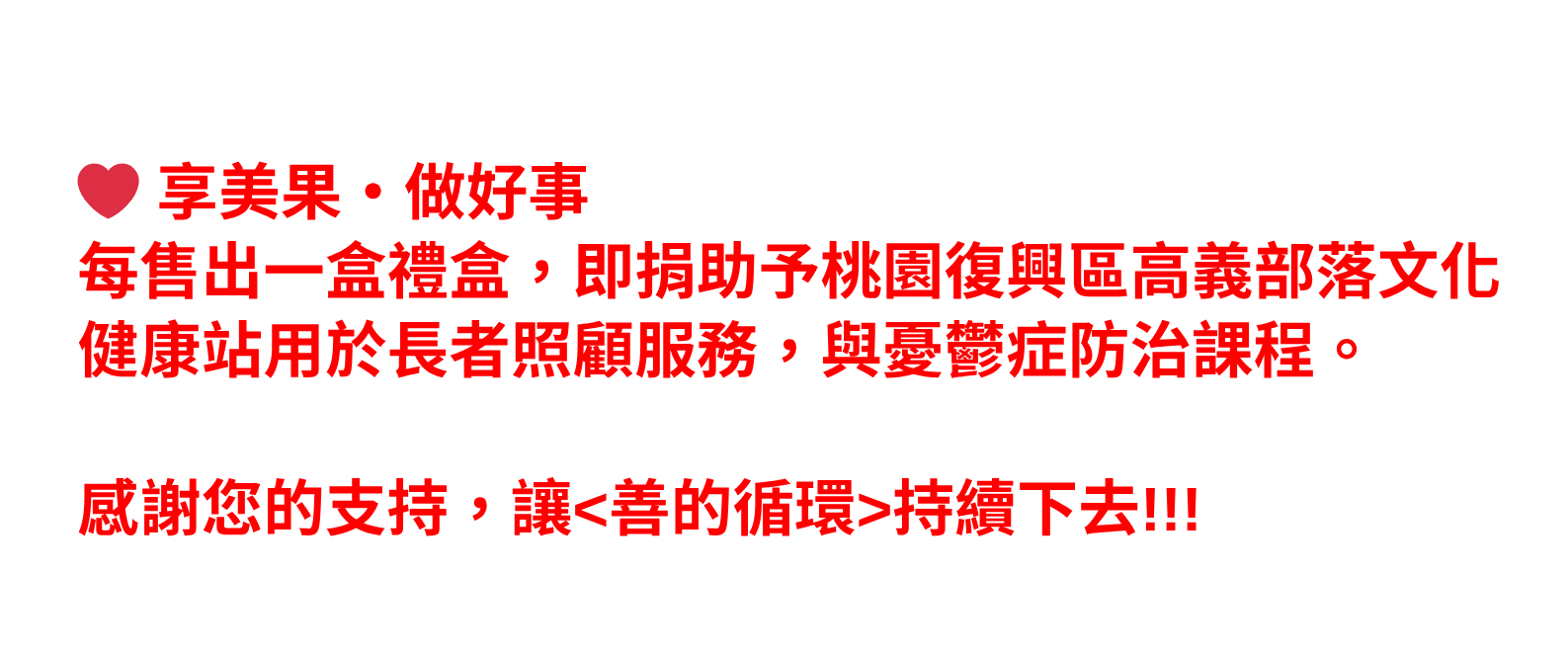 <享美果 做好事> 每一禮盒的銷售收入,都會回饋👵 高義部落長輩照顧服務