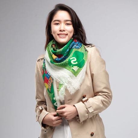 插畫家王子麵指導奎輝國小孩童手繪泰雅族神鳥,再經由服裝設計師呂學政編排設計而成。圍巾披肩兩用的披巾選用使用皇家御用的100%純天然美麗諾羊毛,更具柔和魅力。頂級的材質、充滿童趣又不失時尚品味的圖樣,是一年四季適用的亮眼時尚單品。 以綠色配色代表雨林,小朋友多樣性的手繪呼應著多元與全人類該共同關心的義涵。結合手繪神鳥圖樣,散發著生機勃勃的生命力。